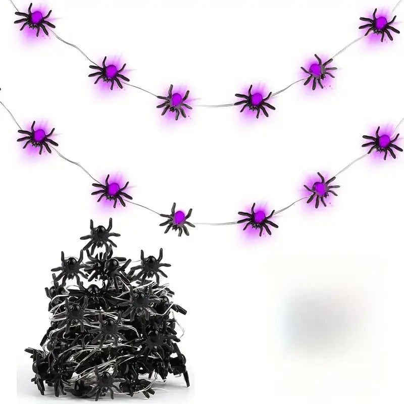 Geef je Halloween-party een creepy vibe met dit LED lichtsnoer vol zwarte spinnen 🕷️💜. Het paarse licht zorgt voor een spooky glow, perfect om je kamer, tuin of feestlocatie mee te versieren. Of je het nu om een pompoen, doodshoofd of langs een raam hangt – dit spinnen snoer maakt van elke plek direct een griezelige eyecatcher.